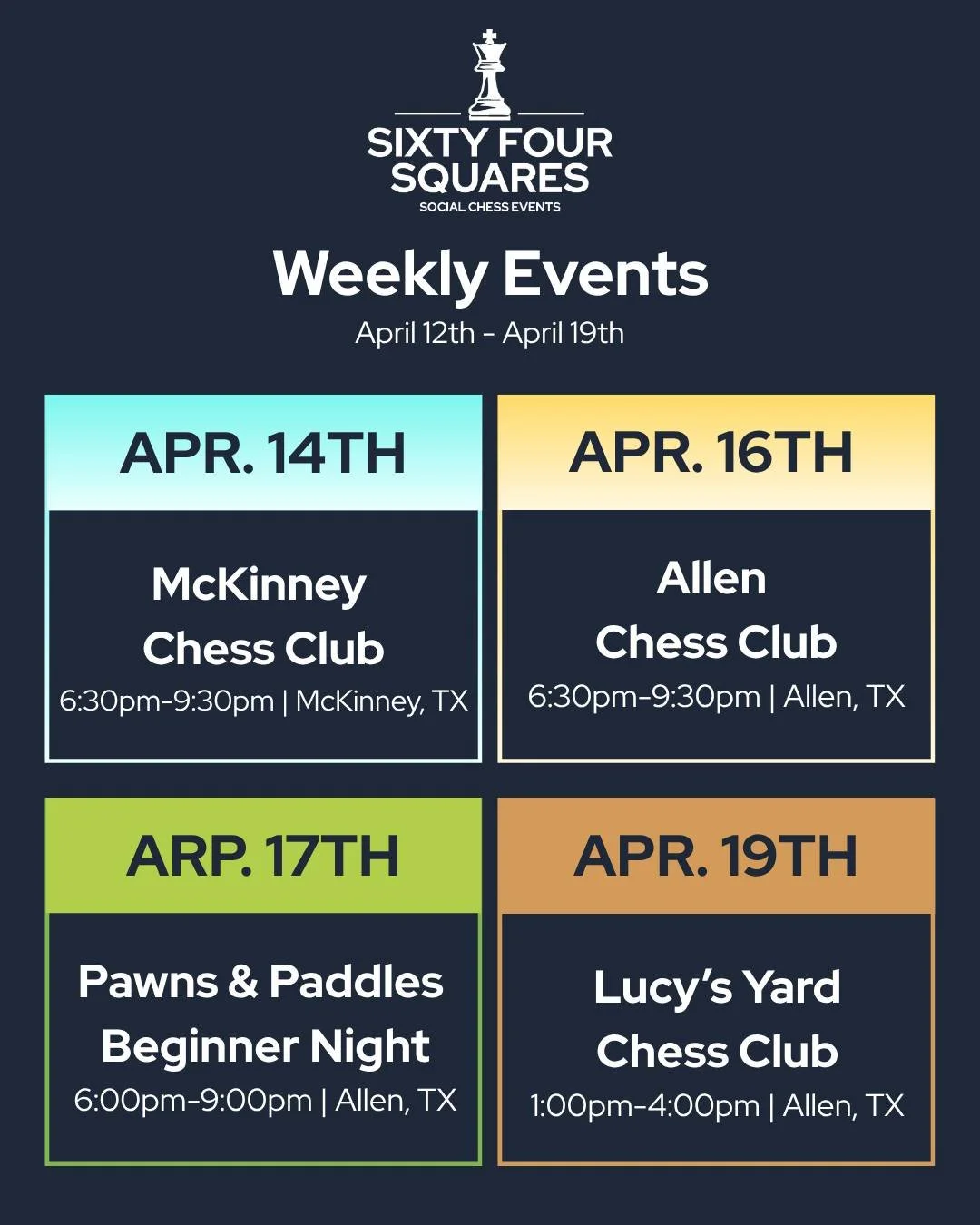 Whether you're brand new to chess or a seasoned player, our programs and events make the Sixty Four Squares feel like home.